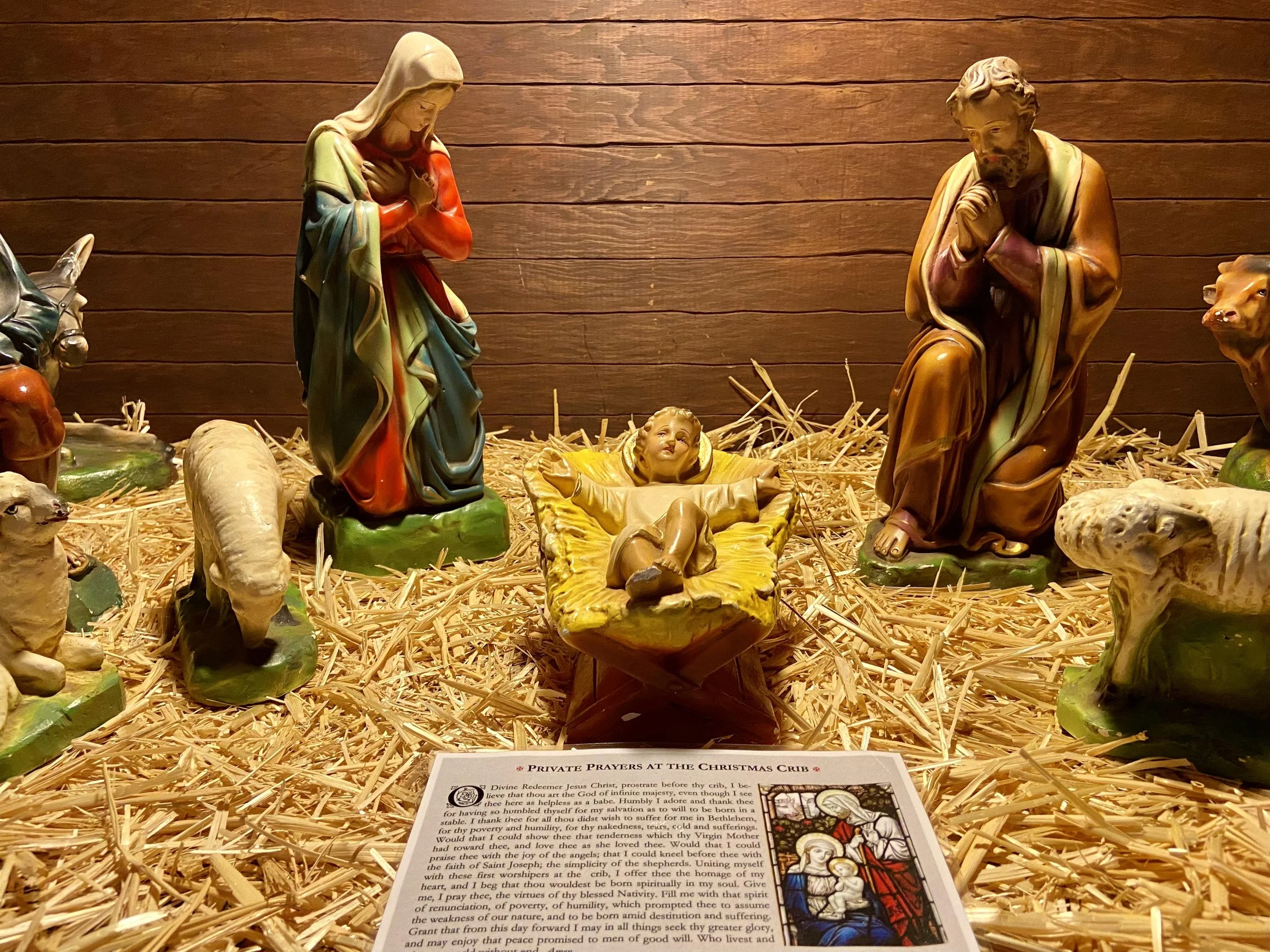 There are many different ways we can pause to reflect on these wonderful mysteries at the core of our faith. Most of our Christmas decorations and traditions, at their root, are intended to communicate theological truths to those who observe them. It was St Francis of Assisi (1182-1226 AD) who popularized the devotional use of the crèche (“nativity scene”) within the western Church. Both at home and in the parish, the crèche serves as a visual and tangible reminder of the manner in which God chose to become one of us… not in splendor, pomp, or power, but in lowliness, fragility, and poverty. Such is the extent of God’s love for us. Notice too that each of the things in the crèche can help us meditate on some aspect of who God is and what he has done: